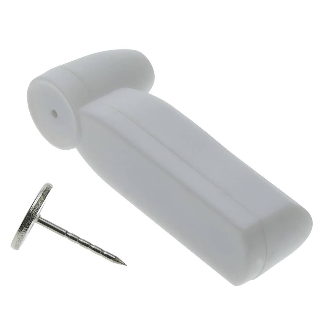 Las etiquetas de alarma dura suelen ser más robustas y se fijan a los productos mediante un mecanismo de pin que requiere un desactivador especial para ser removido, mientras que las etiquetas adhesivas se adhieren directamente a los productos y pueden ser retiradas con el desactivador electronico.